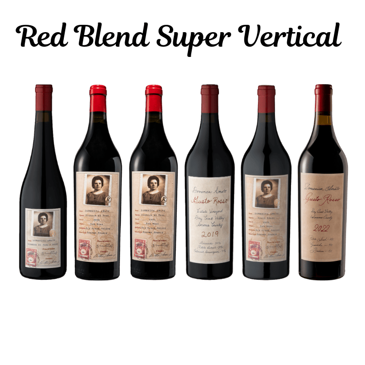 Enjoy two bottles each from 3 different vintages of both of our red blends - the Dry Creek Valley "field blend" Gusto Rosso and the extended barrel aged Estate red blend Riserva di Casa: